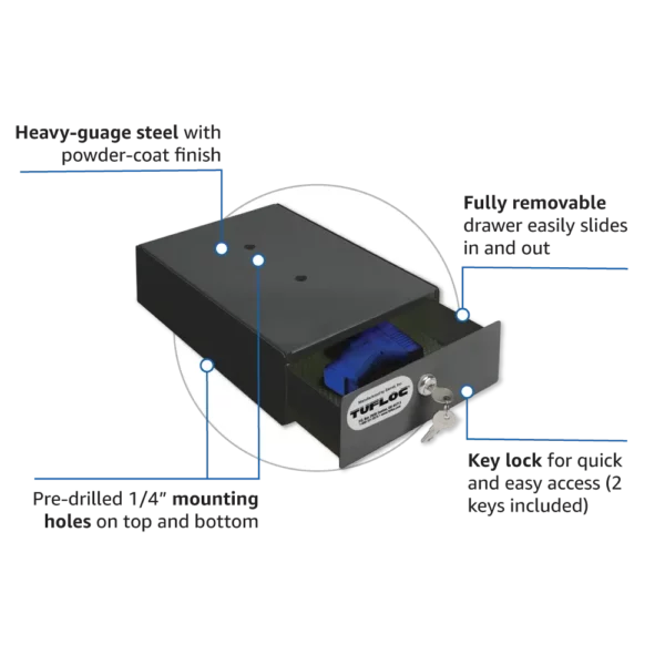The Tufbox Mini Drawer is a rugged and convenient solution for storing handguns or other valuable items. It’s designed to withstand the daily demands of professional use, whether on duty or at home.